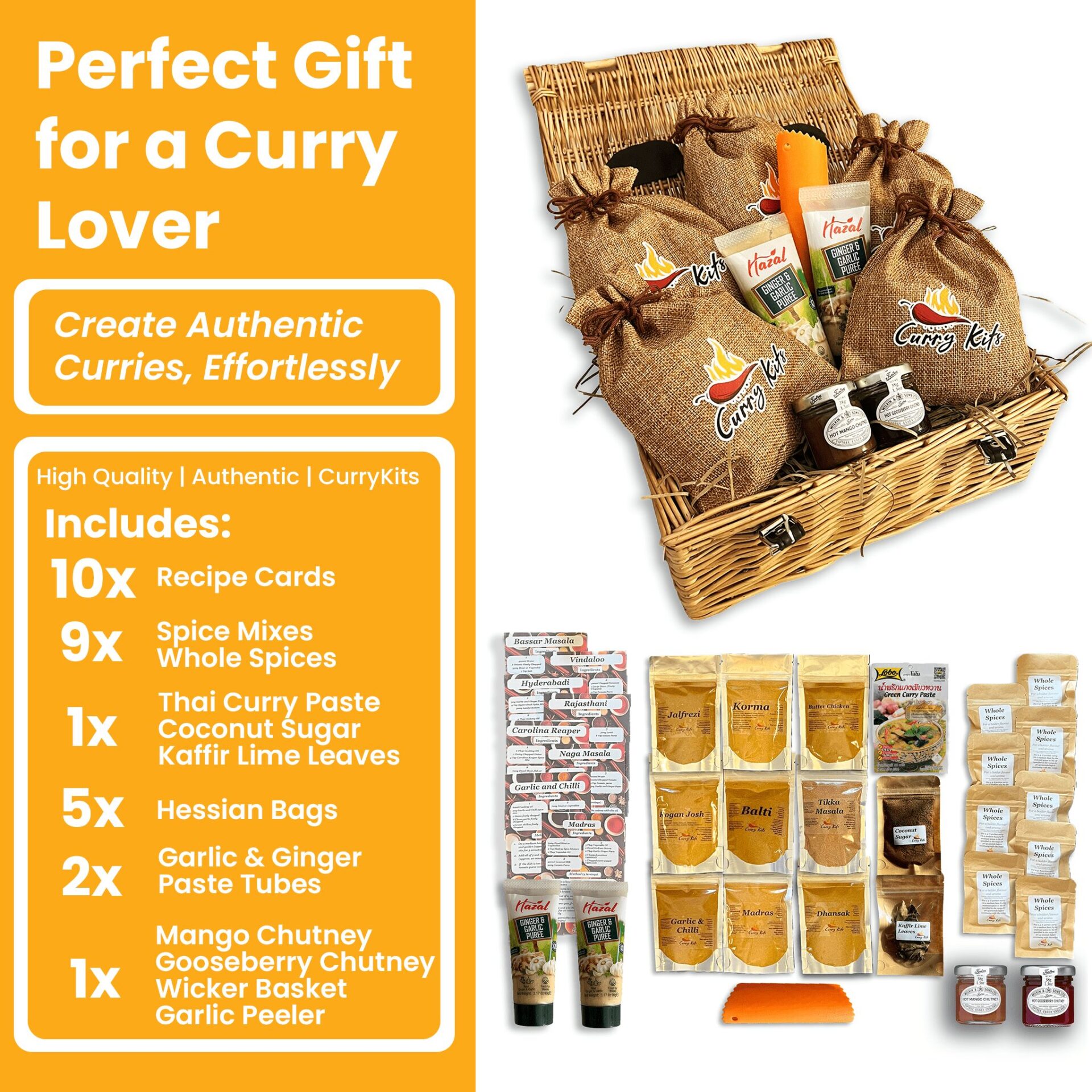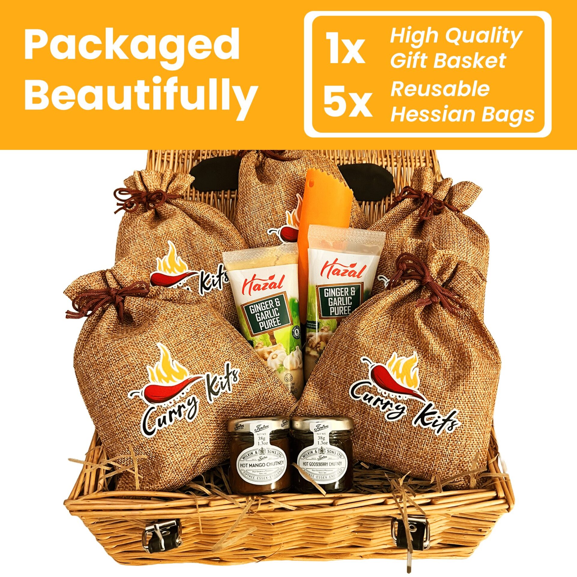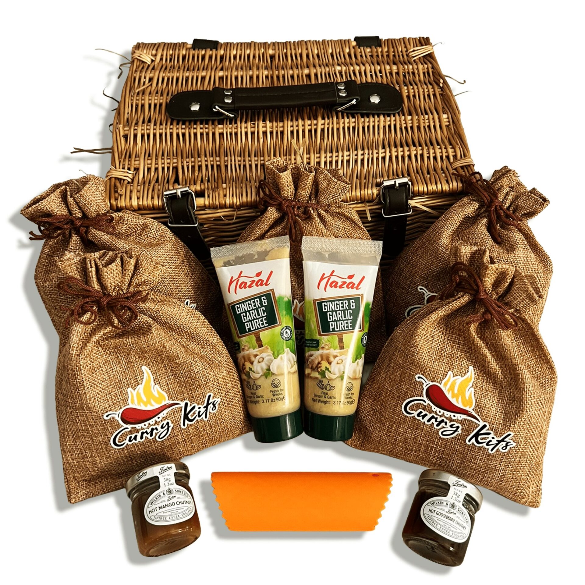 Ignite your taste buds with the Hot CurryKits Wicker Gift Hamper — a handcrafted collection created for spice lovers who enjoy their curries bold, rich and full of flavour.