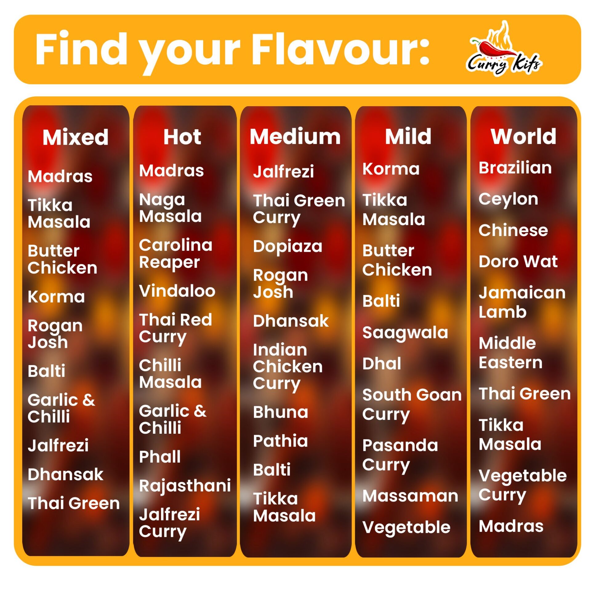 Rajasthani – A Northern Indian-inspired curry with chilli-forward warmth and smoky undertones.